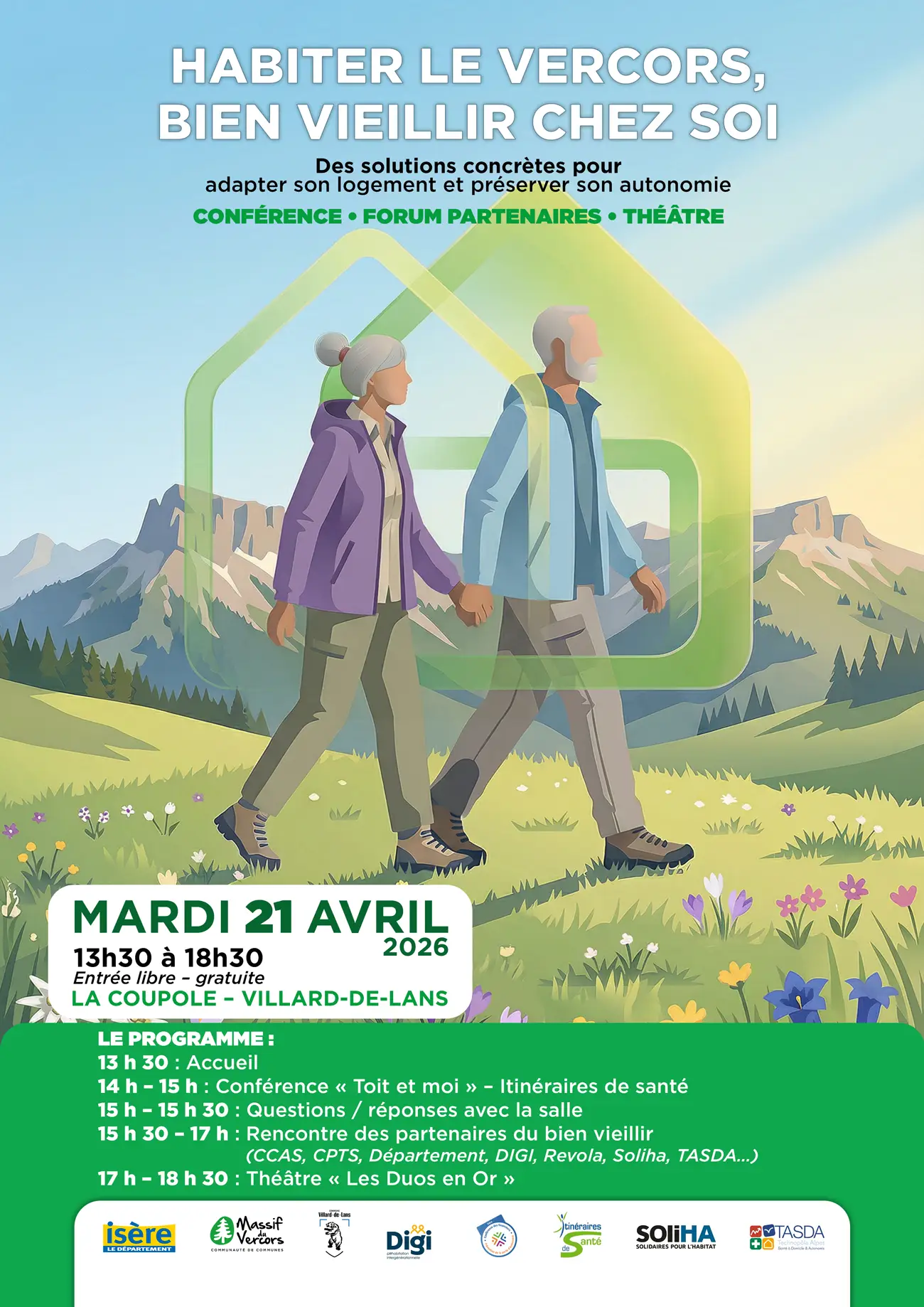 15h30 – 17h00 : Forum partenaires Rencontre avec les acteurs du bien vieillir (CCAS, CPST, Département, DVG, Revoilà, Soliha, TASDA…) 17h00 – 18h30 : Théâtre « Les Duos en Or »