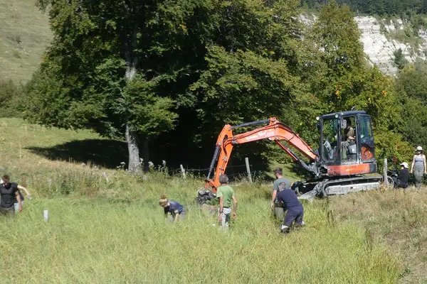 C’est dans ce contexte que la mare de la Robertière, à côté du refuge de la Molière, a reçu un coup de fraîcheur. Elle était dominée par une importante végétation qui, par sa décomposition, participait progres-sivement à son comblement. Le groupe local de l'Atlas de la biodiversité communale (ABC) d'Engins avait observé son tarissement précoce l'année dernière. Il a donc impulsé, aux côtés de la Commune d’Engins et du Parc du Vercors (pour les ABC et l’ENS de la Molière et du Sornin), un chantier participatif encadré techniquement par la LPO. Les 18 et 19 septembre derniers, une douzaine de bénévoles dont des Enginois et Enginoises, se sont retroussés les manches.