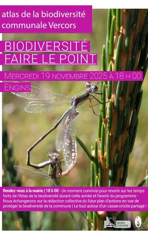Un moment convivial pour revenir sur les temps forts de l'Atlas de la biodiversité durant cette année et l'avenir du programme. Nous échangerons sur la rédaction du futur plan d'actions en vue de protéger la biodiversité de la commune. Le tout autour d'un casse-croûte partagé !