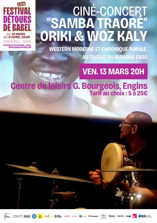 La musique d’Oriki puise dans l’essence des musiques populaires pour créer un répertoire de compositions originales, entre tradition et innovation. Les mélodies et les riffs où s’entremêlent guitare, kalimba, basse et les structures rythmiques portées par les tambours sur cadre, les bongos ou le sabar, offrent un support idéal au chant et à l'improvisation vocale de Woz Kaly. Pour ce nouveau ciné-concert, le groupe nous plonge au cœur de l’œuvre du réalisateur burkinabé Idrissa Ouédraogo, “Samba Traoré”.
