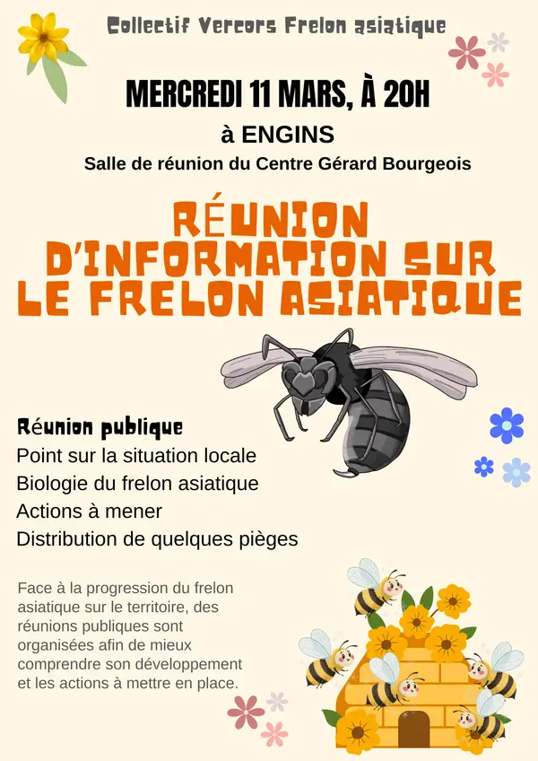 Face à la progression du frelon asiatique sur le territoire, des réunions publiques sont organisées afin de mieux comprendre son développement et les actions à mettre en place. Rendez-vous au centre de loisirs Gérard Bourgeois le mercredi 11 mars, à 20h.